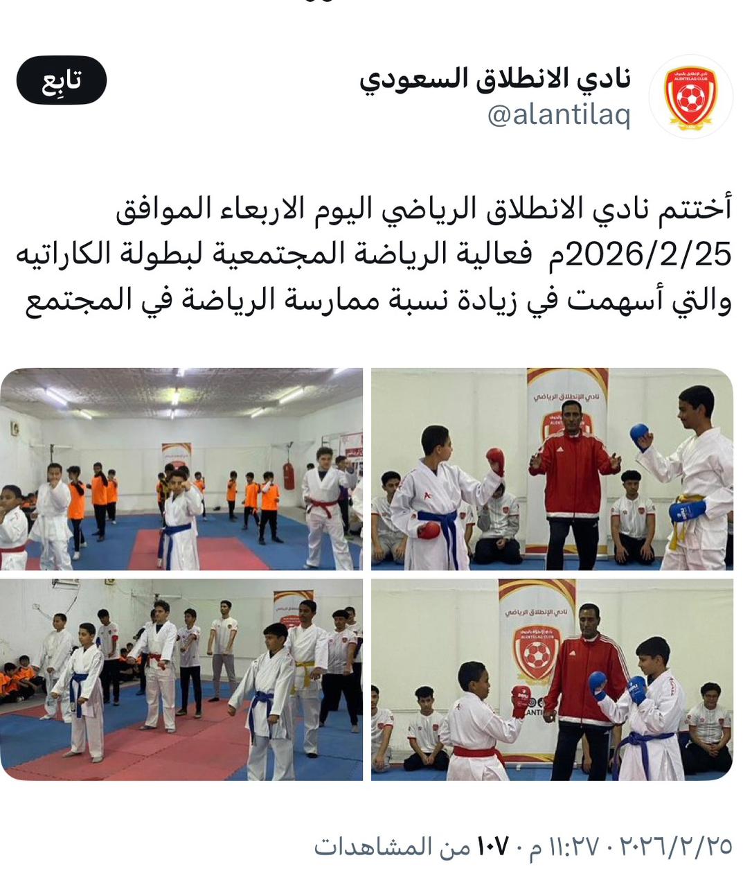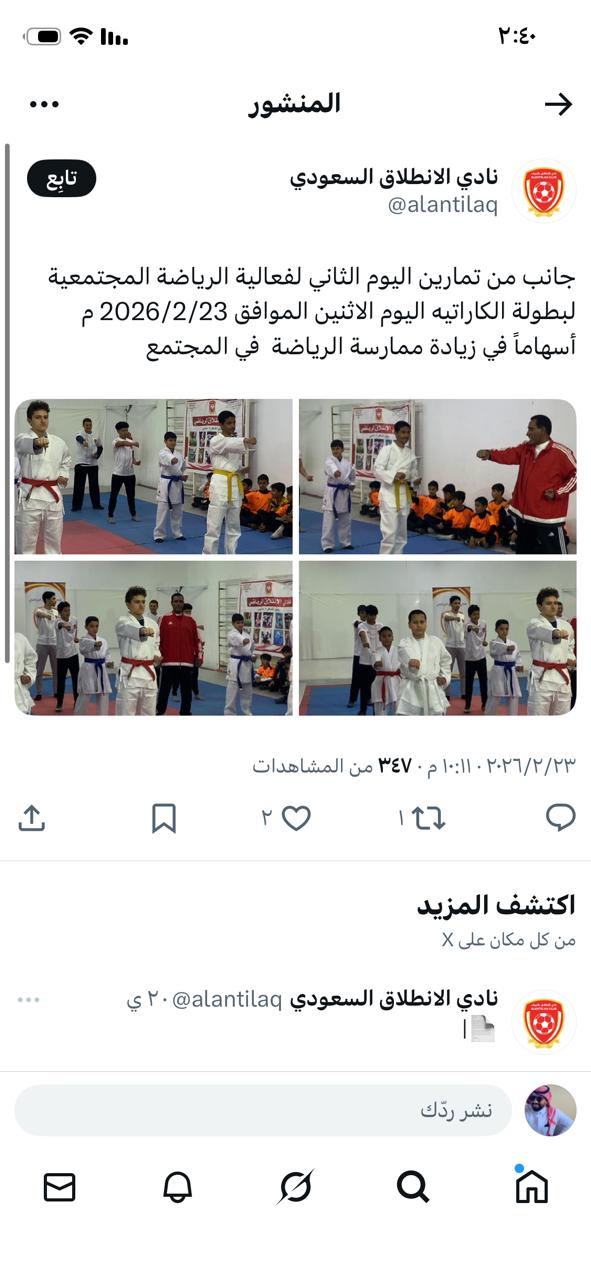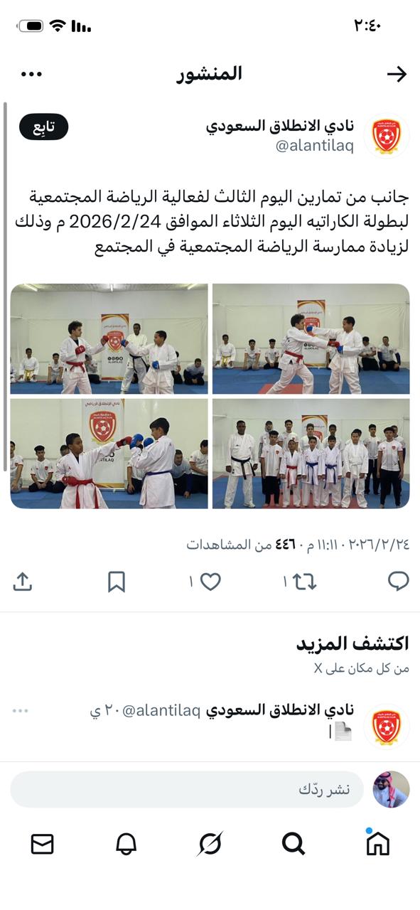 مشاهدة المزيداطلق نادي الانطلاق الرياضي فعالية الرياضة المجتمعية لرياضة الكاراتيه