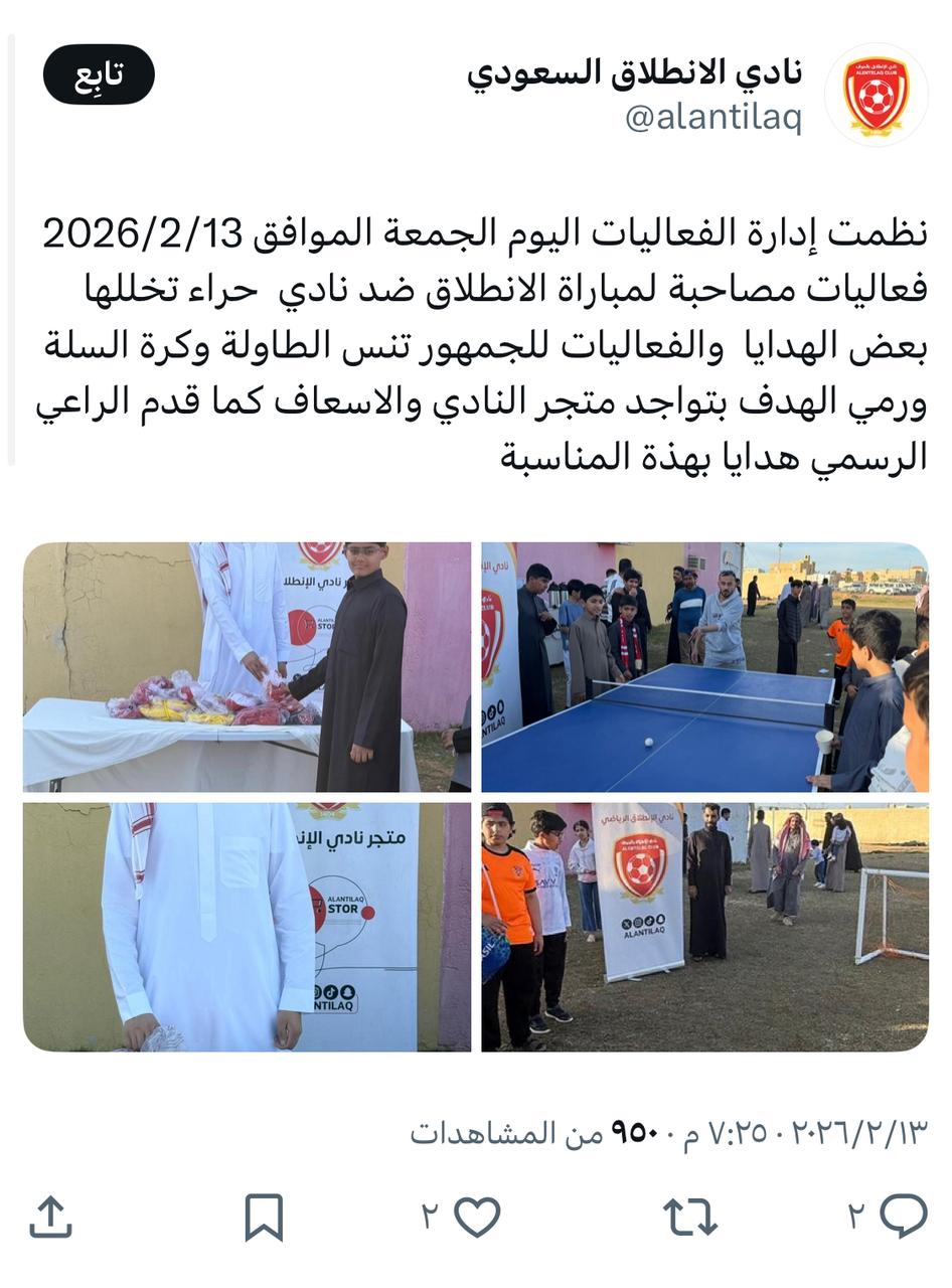 مشاهدة المزيدنظم نادي الانطلاق الرياضي قفزاً من رسمياً اليوم الأربعاء الموافق 2025/2/26م مبادرات الرمضانية حيث تم توزيع مجموعة من السلات الغذائية على الاسرار الأشد حاجة تزامناً مع الشهر الفضيل