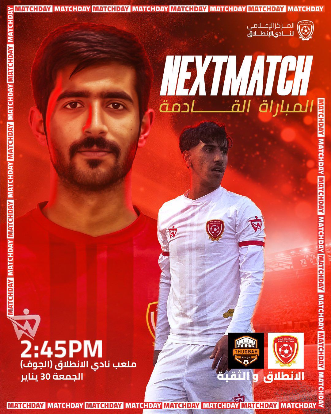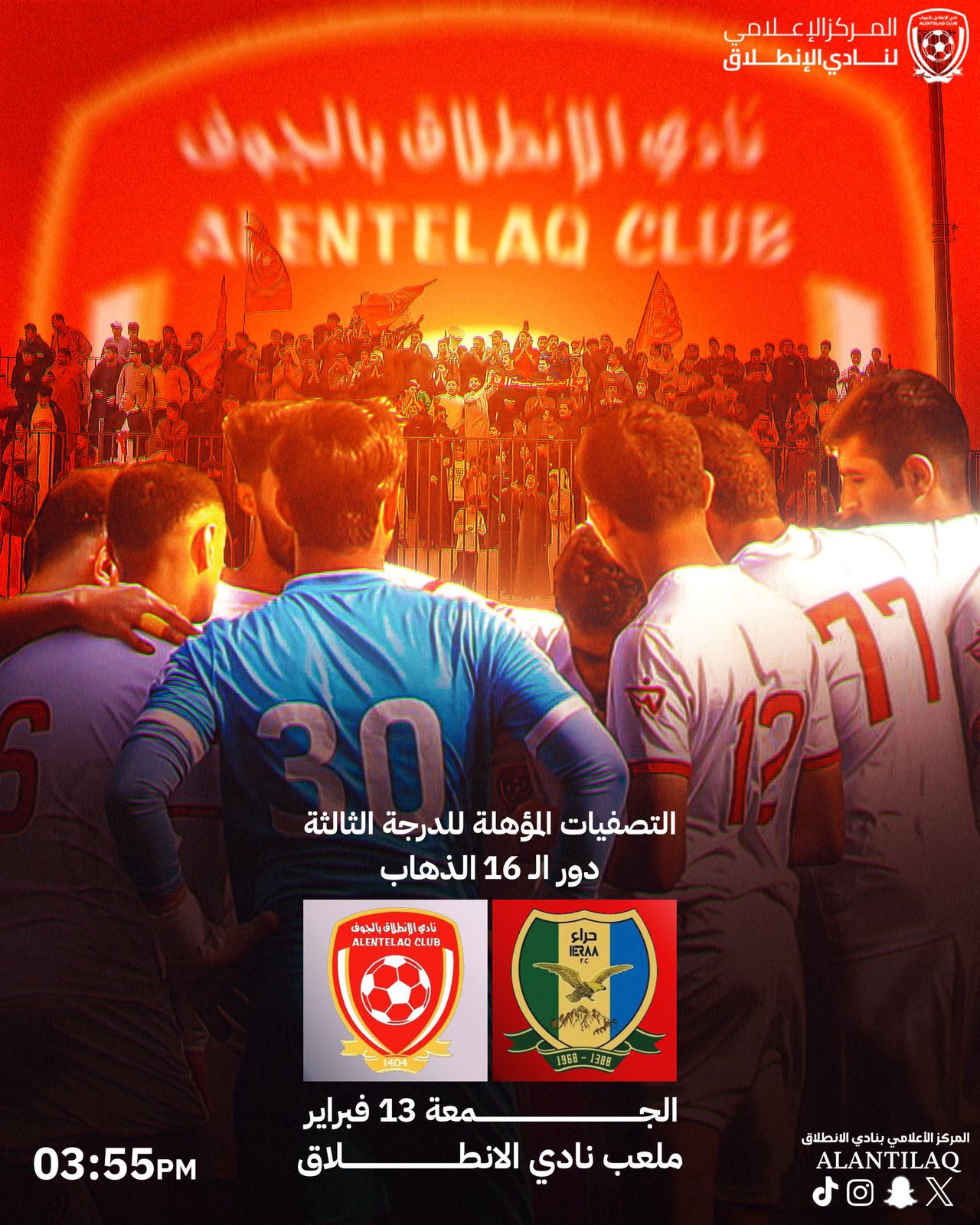 مشاهدة المزيدالاعلا ن عن موعد مباراة الفريق الاول لكرة القدم مع نادي الثقبة في تصفيات المملكة دور 16