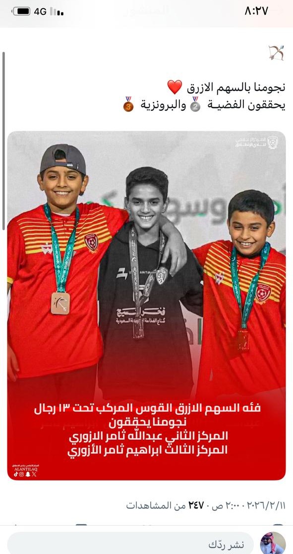 مشاهدة المزيدحقق لاعبا نادي الانطلاق سيف عطية الزهراني وعزام بدر الغامدي فضية وبرونزية القوس المركب تحت 21 سنة في بطولة المملكة للسهام بالرياض